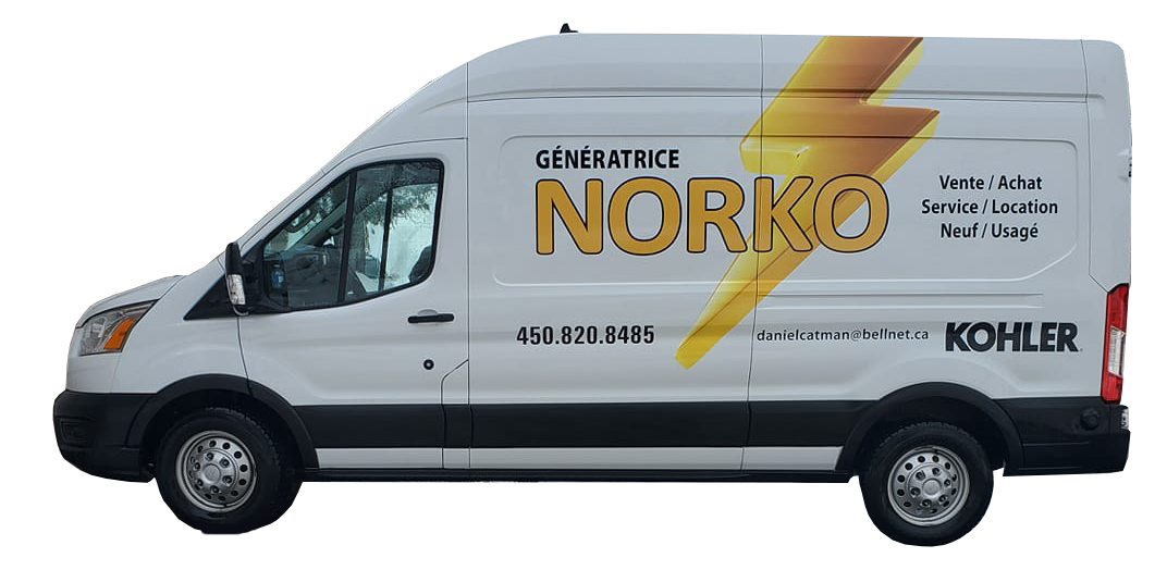 Génératrice NORKO peut installer un système de génératrices à démarrage manuel. Un petit panneau de génératrice est installé près du panneau principal, puis une dizaine de circuits utilitaires (p. ex. : le réfrigérateur, la pompe à eau, la pompe submersible, l’éclairage, le micro-ondes, la prise de voiture électrique) sont transférés vers ce petit panneau. Les circuits dont la consommation électrique est importante ne sont idéalement pas alimentés. Ensuite, un fil est installé entre le panneau et l’emplacement de la génératrice, puis une prise étanche permanente est fixée au mur extérieur. Nous vous fournissons un cordon d’extension pour faire le raccordement entre la génératrice et la prise extérieure.